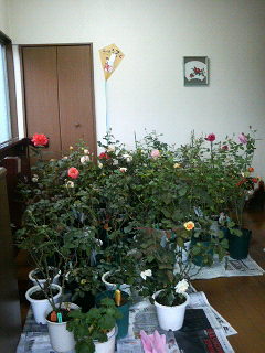 我が家の鉢植えのバラ、昨日中に非難完了。